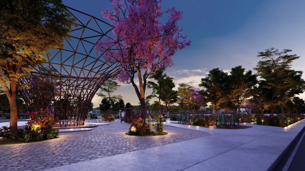 Terrenos ideales para bancos, centros comerciales, supermercados, escuelas y más. Un área comercial con espacios interactivos y cálidos, que a través de un diseño urbano une el comercio y la vegetación.
